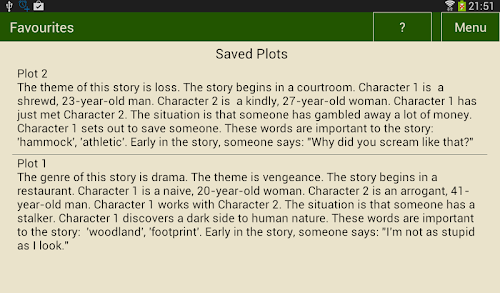 If you are looking to download other versions of Writer's Plot Generator Android App, We have 1 version in our database. Please select one of them below to download.