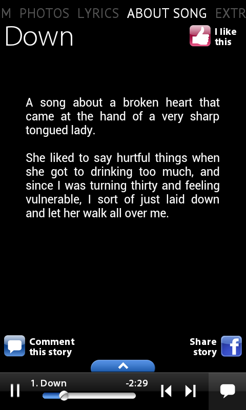 A true music album is now 3 equal elements together: Music + Graphics + Story = 3plet, a revolutionary app, the new music industry format. Add here Song Lyrics, Music Videos and integration with Facebook and you get a wholistic digital piece of art, delivered to you straight from the artist! The New Era of music albums is here!