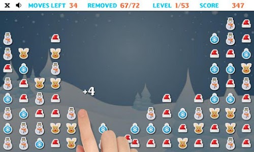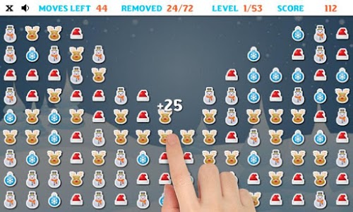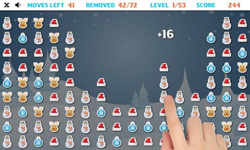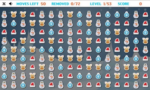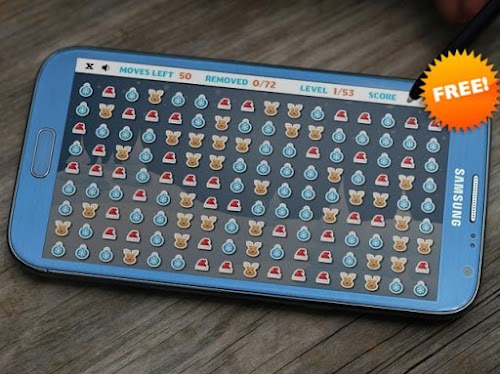 How to play: Game rules are simple, remove the given number of Christmas symbols to progress to the next level! Just tap on the group of 2 or more same symbols to remove them! Watch out - you have 50 moves available in each level! Also remember, that bigger group removed, the better score your get!