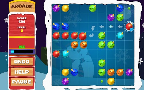 Xmas Lines is a super addictive, simple, yet challenging puzzle game. Remove Christmas baubles from the board by lining up five baubles of the same colour in a vertical, horizontal or diagonal direction. Testing wits and reflexes, more baubles are added after every move, forcing you to think ahead to stop the board from filling up. Use special power-ups to help you along, and play through numerous levels as you try your hardest to master the game.
