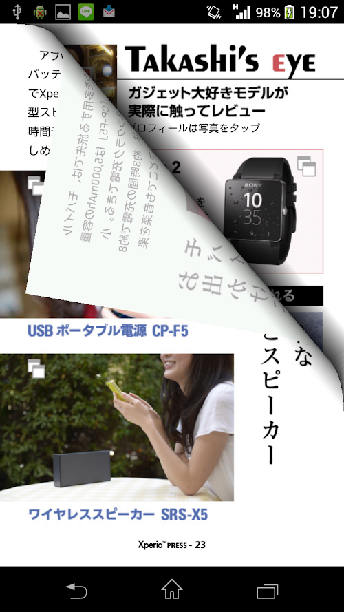 是非、ご愛好のほど宜しくお願い致します。An e-book viewer app for smartphones by Sony Mobile Communications Co., Ltd. to provide. I will deliver compelling content in once a month free of charge. Lifestyle, introduction of useful accessories and applications, such as the interview of the person you are new initiatives and challenges to that of Sony, catch up all the relevant information that spread from the Xperia ™. We will continue to deliver in the early user of everyone seasonal information.