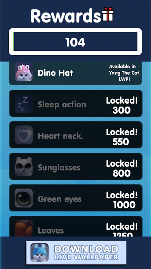 NOTE: Make sure to install the latest version fro both, live wallpaper and Yang The Cat Game to be able to unlock all the new items & features!