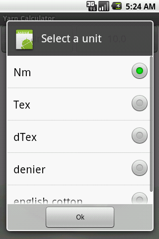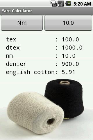 Simple app to convert the yarn units Nm, tex, dtex, denier and english cotton.