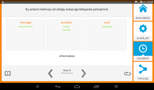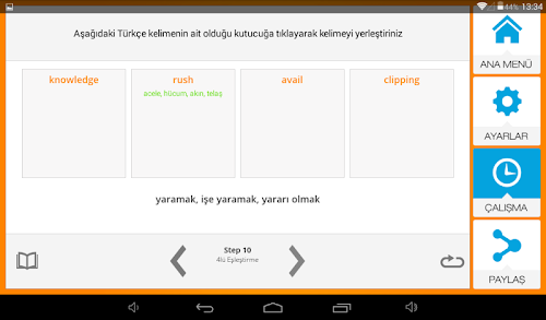 Öğrendiklerinizi pekiştirmek için çalıştığınız kelimelere tekrar çalışıp, karma testler uygulayabileceksiniz