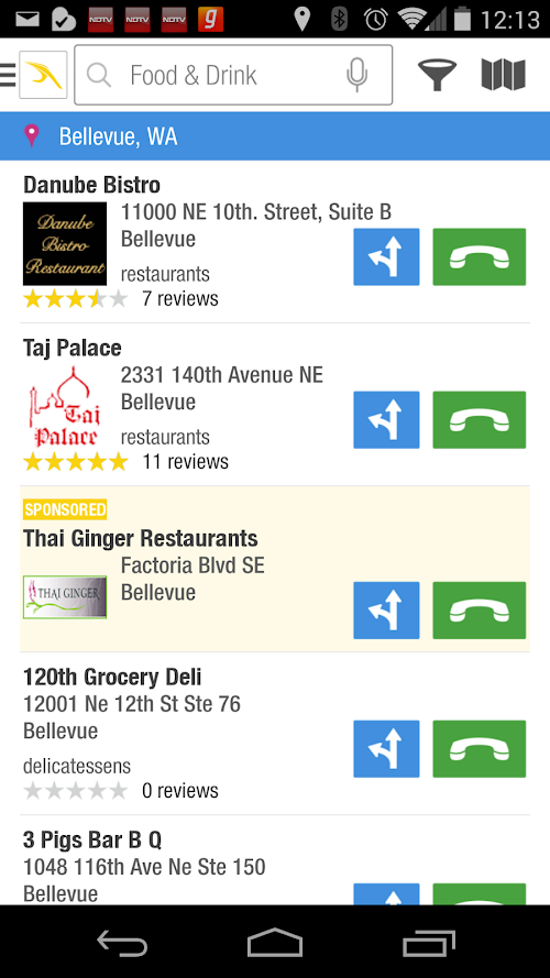 Simplify your screen by pulling in the power of several apps in one. Take us with you and you’ve got over 16 million businesses at your fingertips, wherever you go. Plus all the cool features from before such as super easy voice search, maps, trusted reviews and ratings and much more.