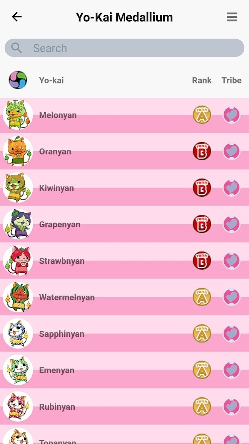 Use the search button to easily find the Yo-kai you're looking for.