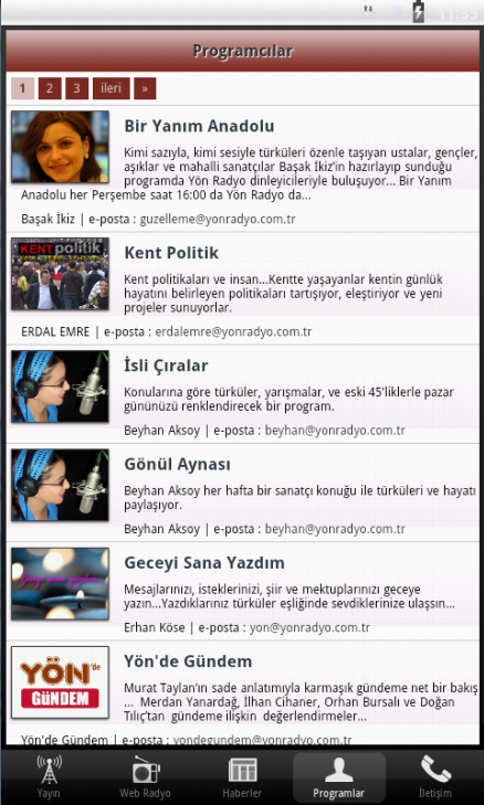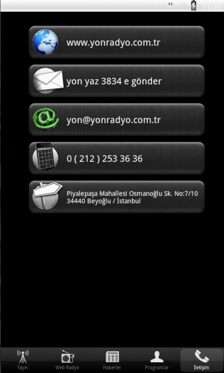 Yon Radyo uygulaması Android 2.3 ve üzeri sürümlerde çalışmaktadır Uygulama ile ilgili hatalı durumlar ve istekler için [email protected] mail atabilirsiniz
