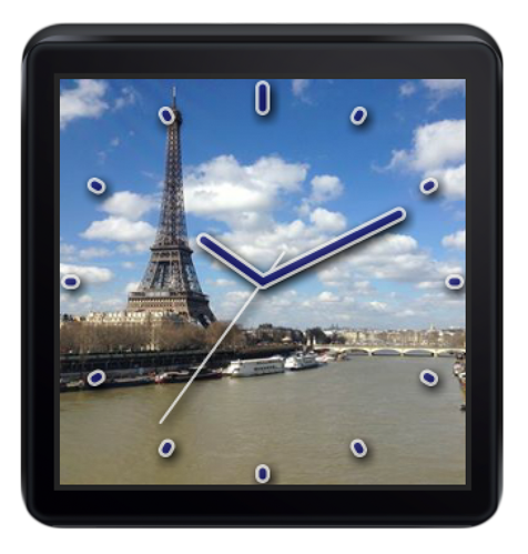 A choice of specially-designed digital or analog watch face shows the time clearly without detracting from the background picture.