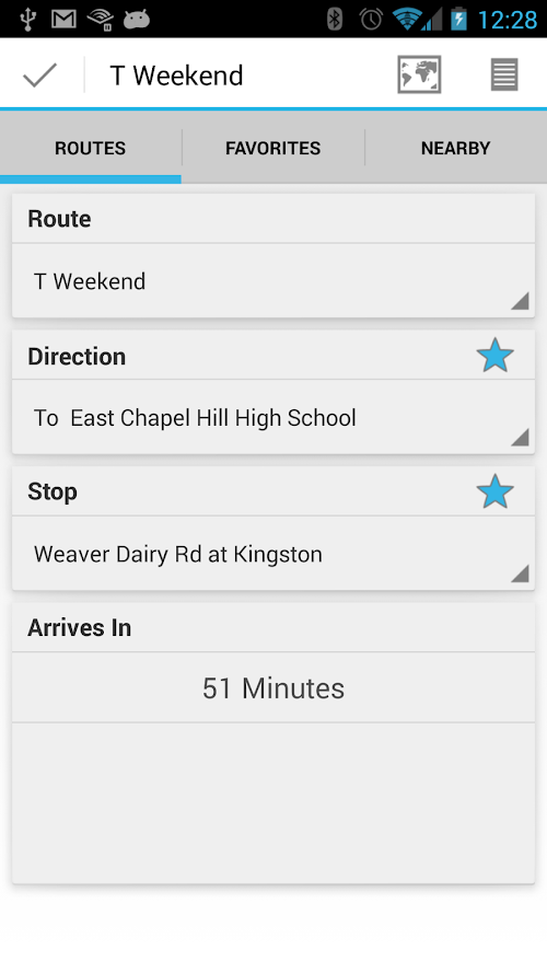 + Favorite your routes so that you can quickly lookup a list of stops and get their predictions.