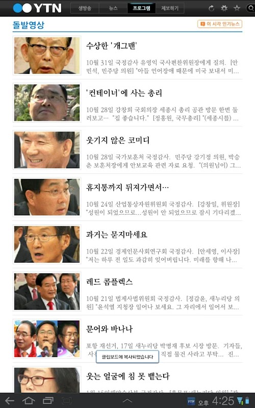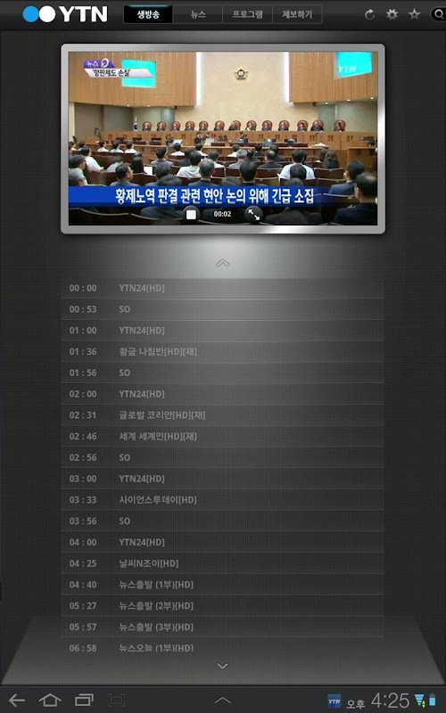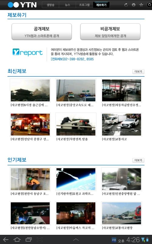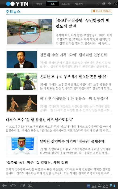 With the YTN news App for the Android Phone, you can get live streaming video of YTN, including Science TV, YTN FM and YTNDMB.