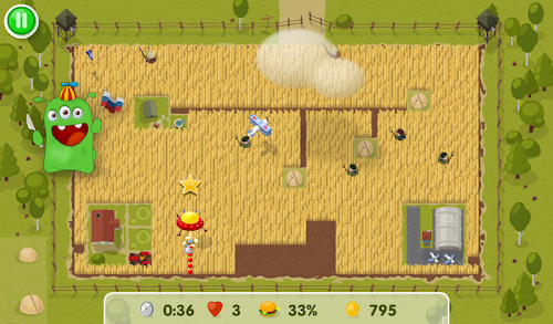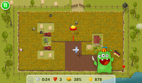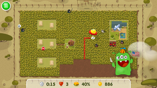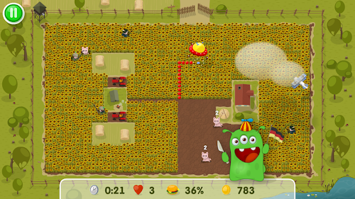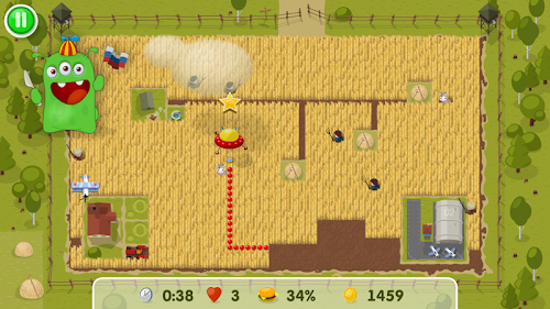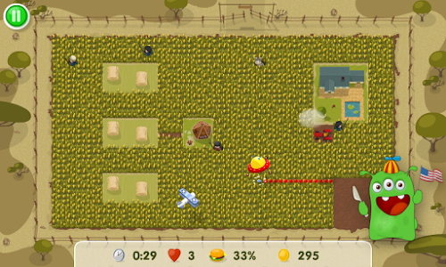 Use your flying saucer to cut off part of a wheat field and collect the animals. Fill totally your cargo bay! But