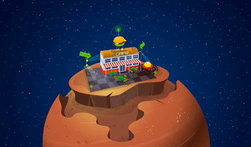 After a few weeks, he saw a small green planet and delicious FOOD on it! But he did not know that the inhabitants of this planet do not want to give up their food ....