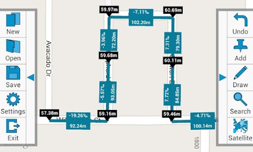 Click on the desired points on the google map and the app automatically will generate the Z level, slope and length between the pinned Z levels.