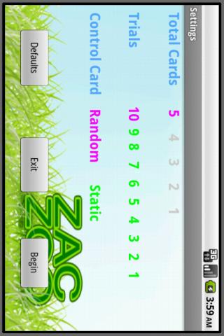 ZacZoo2 is a discrete trial training (DTT) based application. ZacZoo2 is the next stage of DTT learning initially established in the original ZacZoo App. ZacZoo2 is a card matching drill using the same themed cards as the original ZacZoo App. It provides the student with a verbal and written match prompt. The student, through a trial and error process, has the ability to touch the prompted card. ZacZoo2 Lite provides color themed cards. The user can also choose the number of trials and focus card. The student will be prompted for correct or incorrect selection.