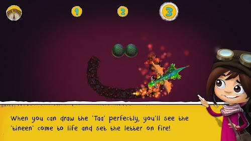 Your child will smile as their efforts are rewarded with a playground scene where the animated Arabic Alphabet letters come to life! Watch as the the tineen (dragon) blows fire, the ghorilla (gorilla) goes bananas and the sarukh (rocket) prepares for take off and many more special animated playground scenes.