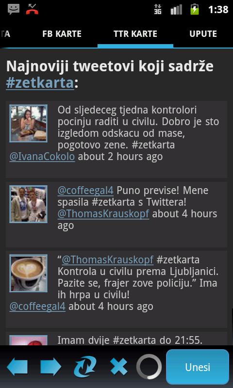 Aplikacija dohvaća i prikazuje podatke sa stranice http://www.zetkarte.org i tweetove koji sadrže hashtag "#zetkarta".