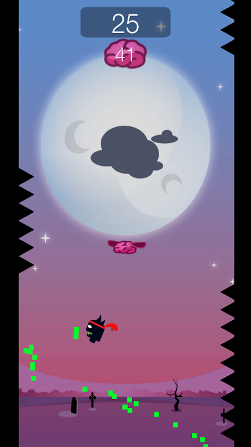 Try to get away from the cemetery and eat as many brains! Be careful - do not fall into the trap! Tap on the screen and dash higher and higher!