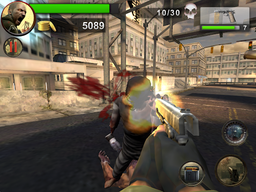 The walking dead, running dead zombies which increase the thrill of playing the Zombie Shooter in a 3D environment can come from all the city.
