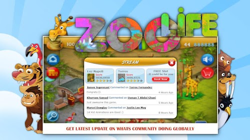 Zoo land is social game for building beautiful zoo. You are given tasks to decorate your zoo with animals and various decorations; so as you not only make zoo but also let kids play around and relax in the zoo. The game is extremely social in nature as every user is given opportunity to rate and visit other members’ zoo; the one who gets the most favored rating gets the opportunity to be on leaderboard. Similarly, the stream helps you review activities of global community.