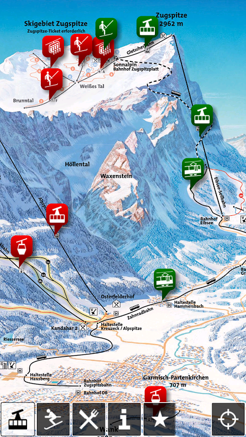 Interaktiver und real-time Guide für die Skigebiete und Berge Garmisch-Partenkirchens powered by intermaps. Pistenplan mit Augmented Reality zur einfachen Orientierung, GPS Ortung auf dem Pistenplan, Live-Informationen direkt von der Bergbahn – geöffnete Pisten und Lifte, Wetter, Webcams, Schneehöhen, Link zur offiziellen Facebook Seite und vieles mehr.