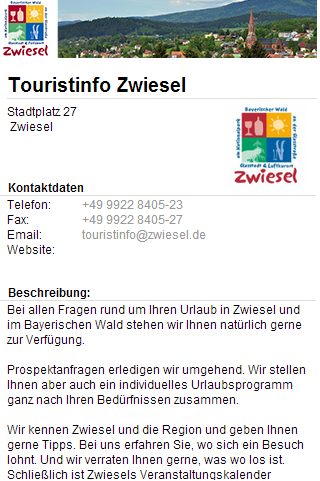 EINIGE FEATURES DES CITYGUIDE Zwiesel IM ÜBERBLICK:
